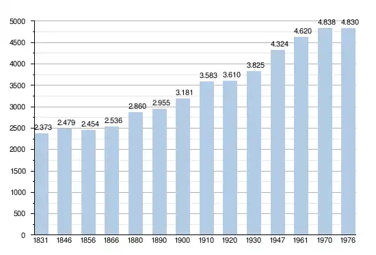 • Sources : INS, Rem. : 1831 jusqu'en 1970 = recensements, 1976 = nombre d'habitants au 31 décembre[2].