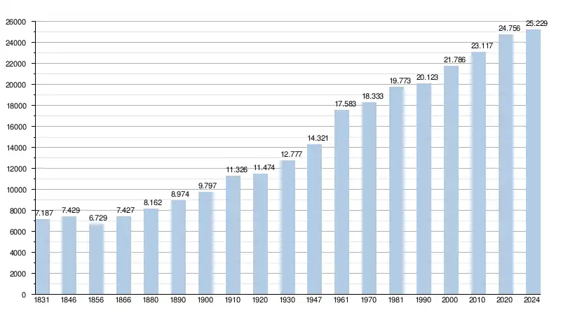 - Source : DGS - Remarque: 1831 jusqu'à 1981=recensement; depuis 1990=nombre d'habitants chaque 1er janvier[4]