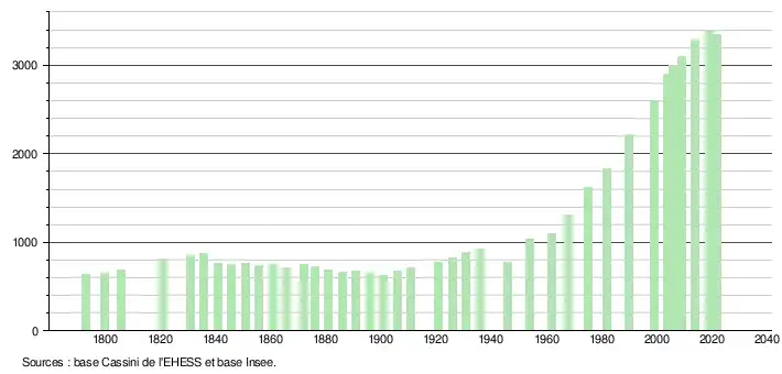- ↑ Fiches Insee - Populations de référence de la commune pour les années 2006, 2007, 2008, 2009, 2010, 2011, 2012, 2013, 2014, 2015, 2016, 2017, 2018, 2019, 2020, 2021 et 2022.