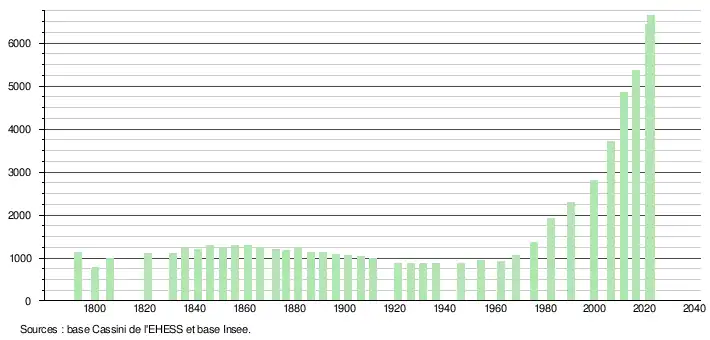 - ↑ Fiches Insee - Populations de référence de la commune pour les années 2006, 2007, 2008, 2009, 2010, 2011, 2012, 2013, 2014, 2015, 2016, 2017, 2018, 2019, 2020, 2021 et 2022.