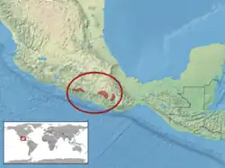 Cette espèce est endémique du Mexique[1]. Elle se rencontre entre 2 000 et 3 000 m d'altitude au Guerrero et en Oaxaca[2].