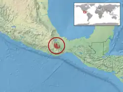 Cette espèce est endémique d'Oaxaca au Mexique[1]. Elle se rencontre entre 2 500 et 3 000 m d'altitude.