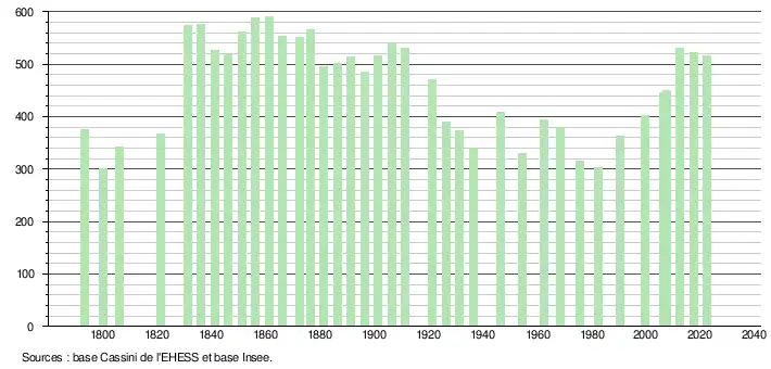 - ↑ Fiches Insee - Populations de référence de la commune pour les années 2006, 2007, 2008, 2009, 2010, 2011, 2012, 2013, 2014, 2015, 2016, 2017, 2018, 2019, 2020, 2021 et 2022.