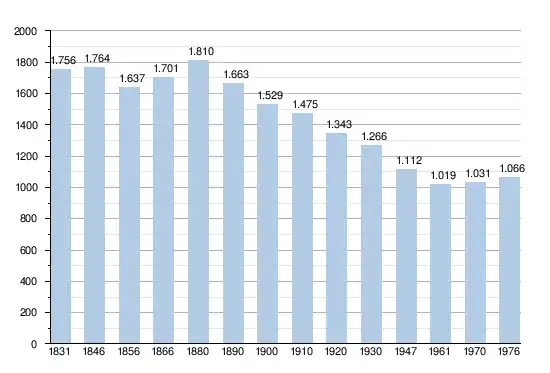 - Sources : INS, Rem. : 1831 jusqu'en 1970 = recensements, 1976 = nombre d'habitants au 31 décembre.