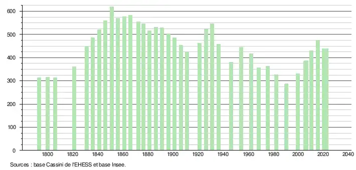 - ↑ Fiches Insee - Populations de référence de la commune pour les années 2006, 2007, 2008, 2009, 2010, 2011, 2012, 2013, 2014, 2015, 2016, 2017, 2018, 2019, 2020, 2021 et 2022.