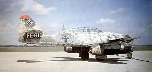 (en)/(de) Cet article est partiellement ou en totalité issu des articles intitulés en anglais « Messerschmitt Me 262 » (voir la liste des auteurs) et en allemand « Messerschmitt Me 262 » (voir la liste des auteurs).