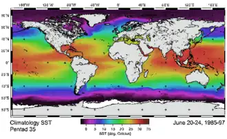 Les satellites ne mesurent pas directement la température. Ils sont équipés de capteurs (radiomètres) sensibles à la luminance de l’atmosphère et de la mer dans le domaine des infrarouges. Les données de satellites couvrent pratiquement tout le globe terrestre avec une bonne précision. Seules les latitudes supérieures à 85 degrés nord et sud ont moins de données à cause de l'angle rasant qu'elles ont pour les satellites géostationnaires et le passage moins fréquent des satellites à orbite polaire.