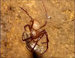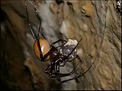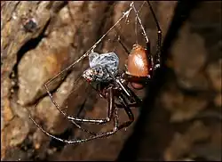 Fig.2 - Meta bourneti femelle ayant capturé un Cloporte. Obsv.Marcou.