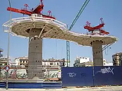 L'entreprise Sacyr fut chargée de la construction ; l'entreprise d'ingénierie britannique Arup et la société Finnforest, spécialisée dans les constructions en bois, furent également mandatées. Les travaux furent initiés le et devaient se terminer en . Assez rapidement, il apparut que le devis avait été sous-estimé et que le projet pourrait coûter non pas 33 mais 50 millions d'euros. En 2006, l'avancement des travaux fut paralysé par une grève de 7 mois, puis de fortes pluies les freinèrent pendant 3 autres mois[3].