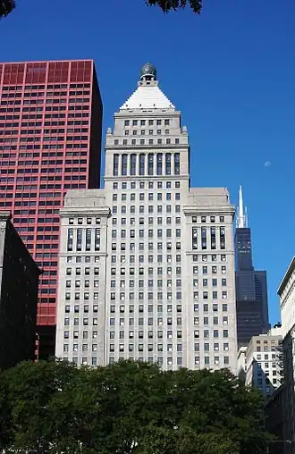 Conçue par la firme d'architecte Graham, Anderson, Probst & White, la Metropolitan Tower a été nommée Straus Building lorsqu'elle fut achevée en 1924. Bien qu'elle fût le premier bâtiment de Chicago à compter plus de 30 étages, elle n'a jamais été désignée officiellement comme étant le plus haut bâtiment de la ville. Comprenant moins de sept étages[5] à son achèvement, le Chicago Temple Building, également construit en 1924 et plus haut de 92 pieds (28 m) était désigné comme étant le plus haut édifice de la ville. Le Straus Building et le Chicago Temple Building ont été les premiers bâtiments de la ville à bénéficier de l'ordonnance de zonage de 1923 ; avant cette date, aucun bâtiment à Chicago ne pouvait dépasser les 79 m de haut[6].