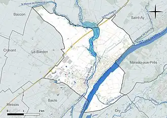 Les communes limitrophes sont Huisseau-sur-Mauves, Baccon, Le Bardon, Baule, Dry, Mareau-aux-Prés et Saint-Ay.