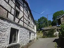 Parmi les fermes les plus anciennes, celle située au no 33 possède une façade en pierres de schiste blanchies avec une porte charretière en anse de panier datée de 1774 par ancres, une toiture peu pentue et un pignon du côté est avec colombages que l'on retrouve aussi aux pignons des habitations sises aux nos 17 et 35.