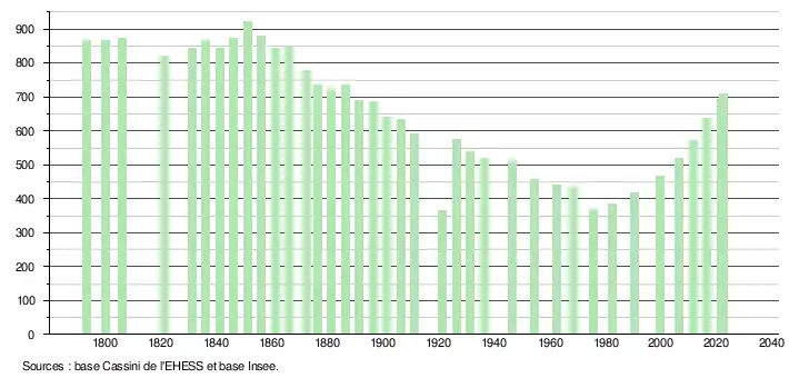 - ↑ Fiches Insee - Populations de référence de la commune pour les années 2006, 2007, 2008, 2009, 2010, 2011, 2012, 2013, 2014, 2015, 2016, 2017, 2018, 2019, 2020, 2021 et 2022.