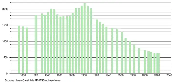 - ↑ Fiches Insee - Populations de référence de la commune pour les années 2006, 2007, 2008, 2009, 2010, 2011, 2012, 2013, 2014, 2015, 2016, 2017, 2018, 2019, 2020, 2021 et 2022.