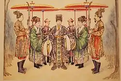 - ↑ (en) Xie Hong et Yan Lan-Lan, « To Explore the Changes in Dress System Affected by Imperial Politics Thinking during Sui and Tang Dynasties », dans Proceedings of the 4th Annual International Conference on Social Science and Contemporary Humanity Development (SSCHD 2018), Atlantis Press, (lire en ligne), p. 26–30.