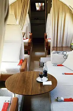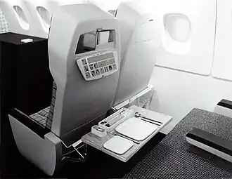 Ses débuts dans l’aéronautique commencent en 1963 avec la rencontre d’Henry Potez, pionnier de l’aviation. Les études et recherches qu’il mène sur le confort, l’ergonomie de l’aménagement intérieur, l’isolation thermique et phonique, aboutiront à la réalisation pour le constructeur Marcel Dassault d’un avion d’affaires, le Mystère 20 rebaptisé Falcon 20 en raison de son succès aux États-Unis, et de l’avion court-courrier Mercure pour lesquels il conçoit la totalité de l’habitacle[13]. Pour Nord Aviation, avec la Socata (Société pour la construction d’avions de tourisme et d’affaires), il conçoit et réalise la version VIP de l’habitacle de l’avion Nord 262. Sa notoriété en ce domaine voit son point culminant avec le Concorde, l’avion de ligne supersonique conçu en 1962 par la France et l’Angleterre pour relier Paris et Londres à New-York, dont le premier vol a lieu en 1969 puis une mise en service en 1976. À la demande d’Air France, Michel Buffet conçoit l’espace intérieur comprenant l’éclairage, les revêtements intérieurs, les sièges équipés de tablettes polyvalentes pour lire, écrire et poser un plateau-repas, la vaisselle et le service à bord. Ce service Concorde, assiettes en porcelaine de la manufacture Raynaud de Limoges et couverts en inox de la maison d’orfèvrerie Bouillet Bourdelle à Vichy connait un tel succès qu’une version allégée a équipé l’ensemble de la flotte d’Air France. Il figure dans les collections du Musée des Arts décoratifs à Paris et du Musée Adrien-Dubouché – Cité de la Céramique à Limoges. Avec l’Aérospatiale, il conçoit en 1966 le projet d’aménagement de l’avion d’affaires Corvette. Pour les Airbus A340 et A360, il conçoit et réalise en 1988 le poste de pilotage équipé des premiers écrans tactiles.
