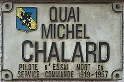 Croix de guerre – avec 2 palmes et 3 étoiles- Une voie de La Boisse se nomme « quai Michel-Chalard »[4]. Anciennement « quai de la Sereine », la voie est rebaptisée le en présence de Jacqueline Auriol et André Turcat[5].