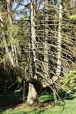 L'absence de la communauté microbienne associée à des arbres importés dans une région et propre à chaque espèce ligneuse (épicéas en plaine, Pin de Monterey et cyprès introduits de Californie en Bretagne) a pour conséquence que l'élagage naturel ne s'effectue plus. L'aspect lisse du tronc correspond ainsi à une sculpture microbienne, les agents d'élagage étant des champignons microscopiques[14].