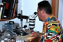 Une fois prélevés sur le terrain, les échantillons sont réduits à l'aide d'une cisaille à main ou d'un trimeur (cisaille hydraulique). Les cristaux sont ensuite « montés » sur une tige collée dans une boite, afin de pouvoir les disposer de façon qu'ils offrent le meilleur angle possible à l'observation visuelle ou photographique à l'aide d'une loupe binoculaire.