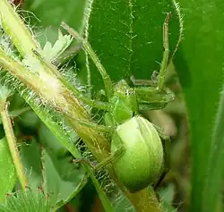 Cette espèce ne tisse pas de toile et chasse les insectes dans la végétation où son camouflage est parfait.