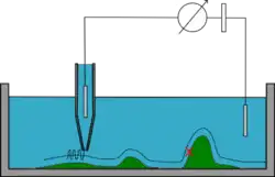 - La SICM se fait dans une solution électrolytique, donc est utilisable en milieu physiologique ce qui rend l'observation de cellules vivantes et de processus biologiques possible en direct[10].