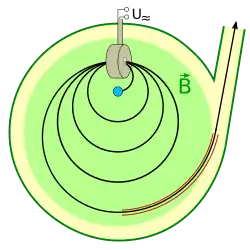 Un microtron est un type d'accélérateur de particules apparenté au cyclotron. Il combine les caractéristiques d'un cyclotron et d'un accélérateur linéaire. Le microtron a été inventé en 1944 par le physicien russe Vladimir Vexler[1],[2]. De par son fonctionnement, l'appareil est adapté pour l'accélération des particules élémentaires très légères portant une charge électrique, à savoir les électrons. Le microtron est l'un des premiers accélérateurs de particules conçu pour prendre en compte l'effet relativiste prévu par Einstein de l'augmentation de la masse de tout objet se déplaçant à une vitesse approchant celle de la lumière[3].