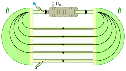 Dans un microtron de type circuit, deux aimants en forme de D sont situés à chaque extrémité de l'appareil pour fournir une plus grande souplesse et atteindre ainsi une plus grande efficacité lors de la phase d'injection des électrons et un gain d'énergie plus élevé par orbite grâce à l'utilisation de structures accélératrices au moyen de cavités multiples semblables à celles utilisées dans les accélérateurs linéaires. Le trajet décrit par les particules sont ainsi constituées de deux tronçons semi-circulaires et deux tronçons rectilignes[4].