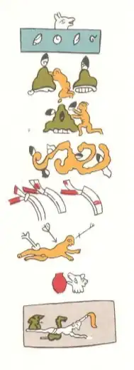 X | Ici, le défunt se présente devant le seigneur des morts appelé Mictlantecutli, qui décide de le dévorer « vivant » ou de le reconnaître comme digne d'accéder au repos éternel. |
