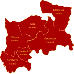Avant la création du comté de Londres en 1889, le Middlesex inclut la majorité de la zone urbaine de Londres. Les portions du Middlesex rattachées au comté de Londres cette année-là correspondent approximativement aux boroughs actuels de Camden, Hackney, Hammersmith et Fulham, Islington, Kensington et Chelsea, Tower Hamlets ainsi que la Cité de Westminster.