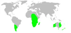 Les espèces de cette famille se rencontrent en Afrique subsaharienne, en Océanie et dans le Sud de l'Amérique du Sud[1].