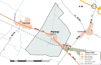 - ↑ « Orthodromie entre Mignères et Ladon », sur fr.distance.to (consulté le ).