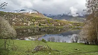 Pic de Tarbésou, vue depuis le sud, et l'étang Bleu; commune de Mijanès. Le pic se situe sur des métasédiments cambriens.