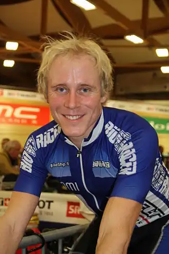 Mika Simola lors des championnats d'Europe sur piste 2015 à Granges.
