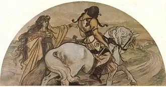 - Peinture de Saint Venceslas à cheval, façade de la Maison Štorch à Prague, 1897 (?).