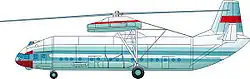 Ses deux rotors contrarotatifs sont disposés à l'extrémité de poutres latérales, ce qui permet de faire l’économie d'un rotor de queue. Sa motorisation (deux fois deux moteurs à turbine) a été reprise du Mil Mi-6, qui avec un seul rotor de ce type était déjà l’un des plus gros hélicoptères de transport au monde. Il avait effectué son premier vol le .