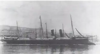 Le navire est propulsé par une paire de moteurs à vapeur composés horizontaux, chacun entraînant une hélice à vis. La vapeur est fournie par douze chaudières Belleville à tubes d'eau au charbon qui sont acheminées vers deux entonnoirs inclinés situés au milieu du navire[5]. Les chaudières à tubes d'eau sont de développement récent et permettent au navire de monter en vapeur et d'accélérer beaucoup plus rapidement que les anciennes chaudières à tubes de fumée[7]. Les chaudières ont été placées sur la ligne médiane au milieu du navire et les soutes à charbon ont été disposées au-dessus d'elles, permettant au charbon d'être alimenté par gravité, réduisant considérablement le travail d'alimentation requis[8]. Pour compléter ses moteurs à vapeur, le navire est équipé d'un gréement de goélette à trois mâts avant et arrière[5].