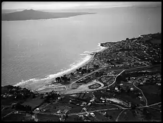 Vue aérienne de Milford, avec l’île de Rangitoto entre 1920 à 1940. | |||