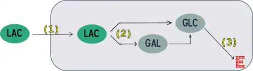 Pour pouvoir utiliser le lactose, une bactérie doit posséder deux enzymes (schéma ci-contre) :