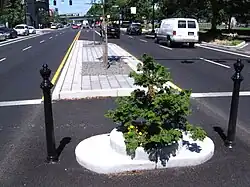 Le pot de fleur est un cercle de 61 cm de diamètre édifié à l'emplacement prévu pour un lampadaire au milieu d'un boulevard. Le pot de fleur recouvre une surface totale de 0,292 m2.