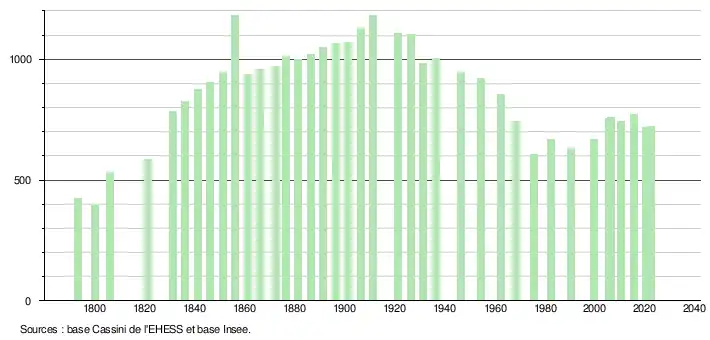 - ↑ Population municipale de référence en vigueur au 1er janvier 2025, millésimée 2022, définie dans les limites territoriales en vigueur au 1er janvier 2024, date de référence statistique : 1er janvier 2022.
