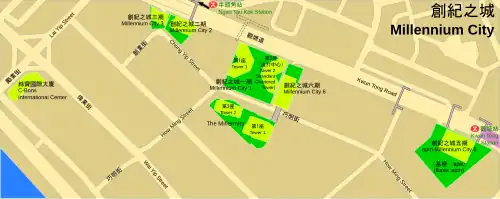 - (en) Cet article est partiellement ou en totalité issu de l’article de Wikipédia en anglais intitulé « Millennium City, Hong Kong » (voir la liste des auteurs).