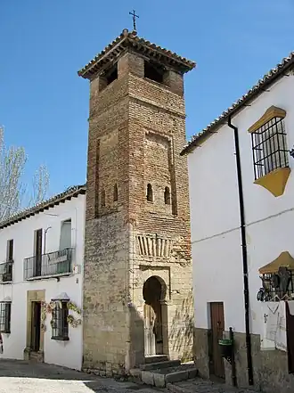 La tour est de plan carré et a trois étages de hauteur, les deux premiers sont de construction arabe et le plus élevé, ajouté postérieurement, après la Reconquista, pour placer les cloches. La partie basse est construite en pierre, le reste en brique.