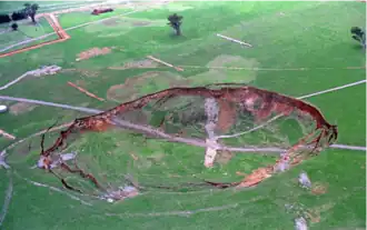Effondrement minier survenu sur la mine d'Elura située à 600 km à l'ouest-nord-ouest de Sydney, qui exploitait un gisement découvert dans les années 1970. Les mineurs y extrayaient de l'or, de l'argent, de l'ilménite, du leucoxène (altération de l'ilménite[1]), du zircon, du cuivre, du zinc et du plomb. L'effondrement s'est produit peu après le retrait des mineurs (et du matériel de chantier).