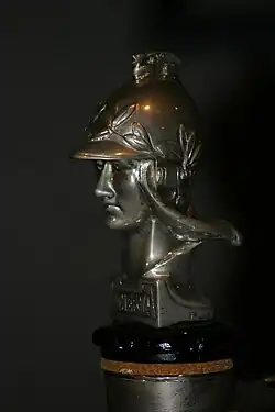 L'emblème de la marque est une tête de femme casquée, représentant la déesse romaine Minerve.