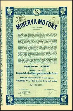 - (en) Cet article est partiellement ou en totalité issu de l’article de Wikipédia en anglais intitulé « Minerva (automobile) » (voir la liste des auteurs).