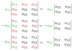 Si A est une matrice carrée de taille n, les mineurs d'ordre n – 1 permettent le calcul du déterminant de A, selon la formule de Laplace. Ils sont au signe près égaux aux cofacteurs.