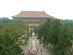 La ville pourpre interdite est entourée de la cité impériale. Sur neuf km de ses environs se trouvent des annexes : le Temple des ancêtres impériaux (太庙, , aujourd'hui situé dans le parc de la Culture du peuple), l'autel du Dieu du sol et des moissons (Shejitan, aujourd'hui situé dans le parc Sun Yat-sen) et le siège du gouvernement central (Zhongnanhai).