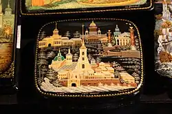 - ↑ (ru) Y. A. Beschapochnikova, « Коллекция произведений традиционной холуйской лаковой миниатюрной живописи в экспозиции Государственного музея Холуйского искусства » [« Production de miniatures laquées de Kholoui »], Педагогика искусства, no 4, , p. 8—9 (lire en ligne)