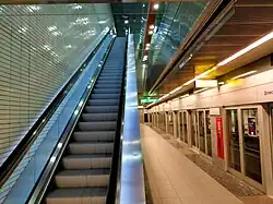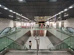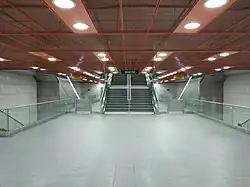 Œuvre réalisée par Olivier Mosset et Damien Aspe[3]. L'œuvre consiste à superposer un pastel rouge et bleu au niveau de la mezzanine de la station.