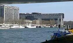 Vue, depuis la rive gauche, vers le bâtiment « Colbert » du complexe architectural de Bercy.